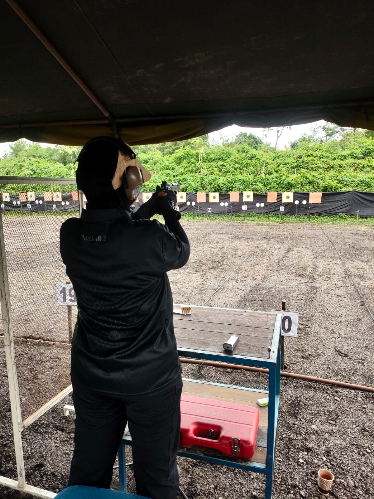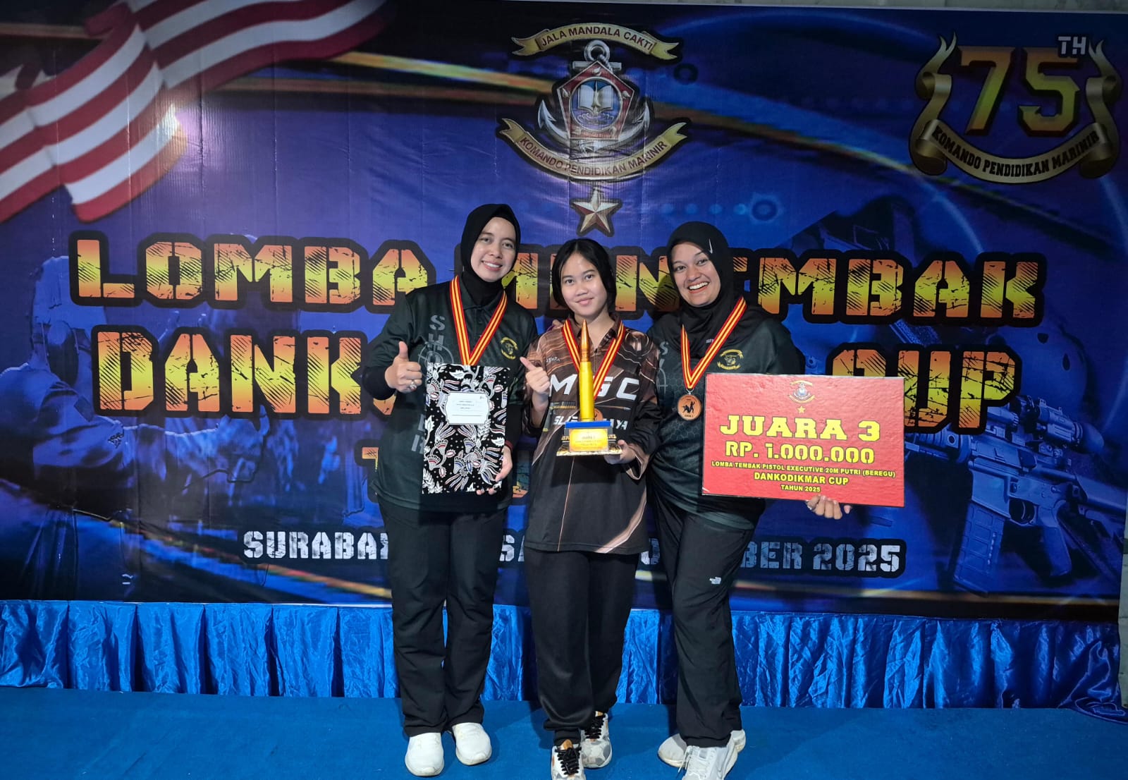TNI Angkatan Laut, Dispen Kormar (Surabaya). Atlet Menembak Korps Wanita Angkatan Laut (Kowal) Anggota Rumah Sakit TNI Angkatan Laut Marinir (Rumkitalmar) Ewa Pangalila Lanmar Surabaya meraih Juara 3 dalam rangka Lomba Menembak Dankodikmar Cup di Lapangan Tembak Pistol Komando Pendidikan Korps Marinir (Kodikmar) Gunung Sari. Surabaya barat. Kamis (20/11/2025).