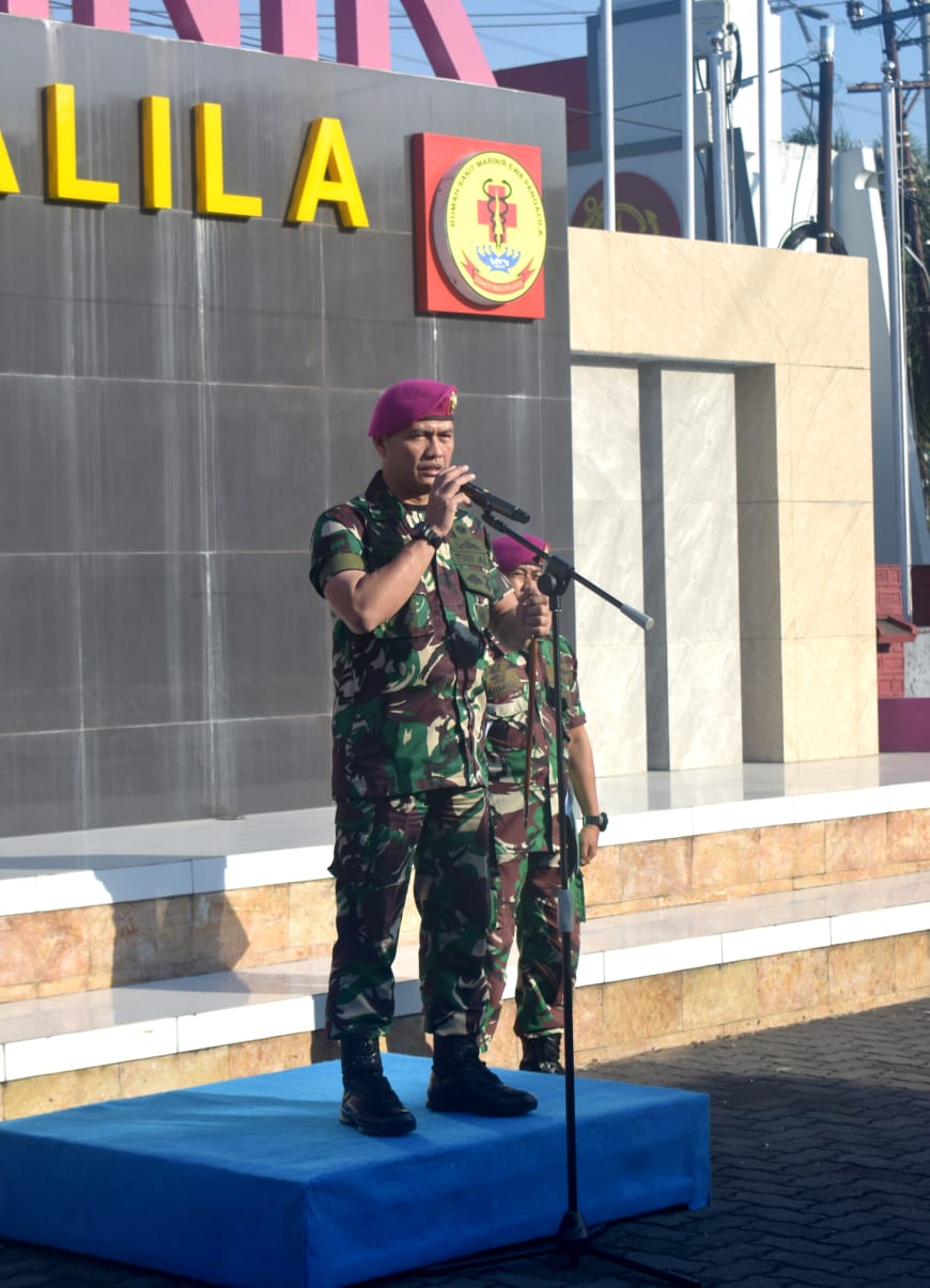 Dalam Rangka Meningkatkan Solidaritas dan Kebersamaan dalam satuan Komandan Rumah Sakit TNI Angkatan Laut Marinir Ewa Pangalila Letkol Laut (K) dr. Abdul Haris,Sp.BS.,M.Tr.Opsla memimpin Apel khusus di bawah jajaranya di Rumkitalmar Ewa Pangalila, Gunung Sari, Surabaya. Kamis (31/07/2025).