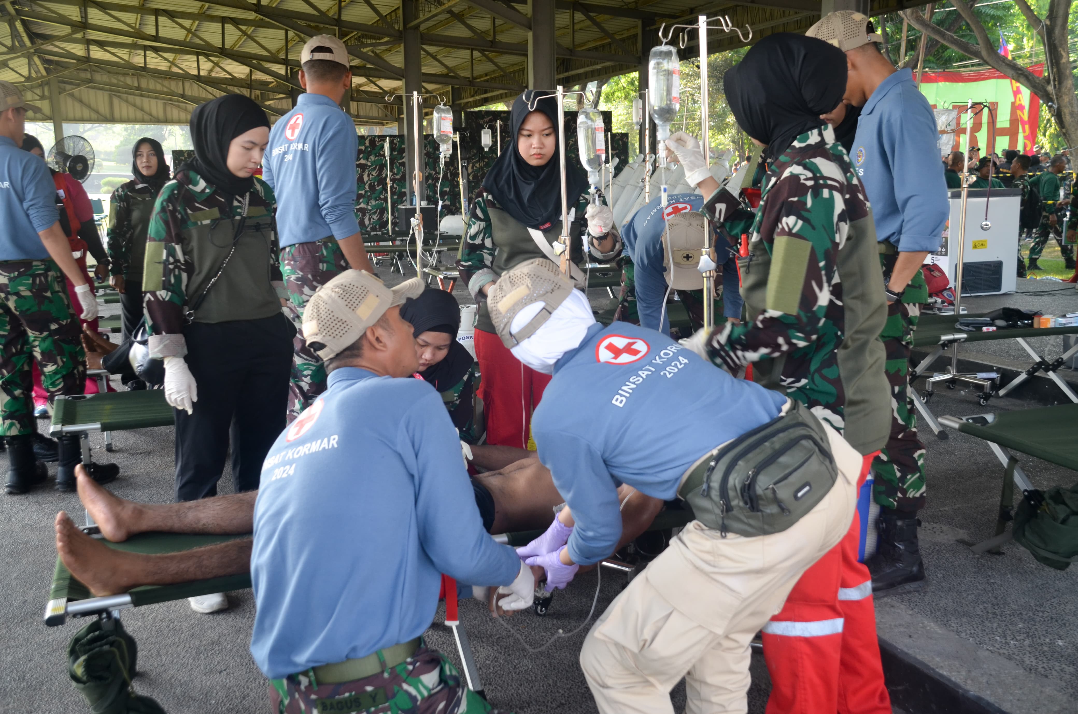 Dalam Kegiatan ini, tim Dukkes dari Rumkitalmar Ewa Pangalila yang bergabung dengan prajurit kesehatan dibawah jajaran kormar dan Palang Merah Indonesia (PMI) Surabaya menjadi salah satu faktor penambah moril para prajurit yang melaksanakan binsat. Diawali dengan Pengecekan tekanan darah peserta binsat selanjutnya tim dukkes menuju titik lokasi yang sudah di tentukan oleh panitia, tidak hanya itu IGD (Instalasi Gawat Darurat) Rumkitalmar Ewa Pangalila selalu siap menerima jika ada pasien yang membutuhkan perawatan lebih lanjut.